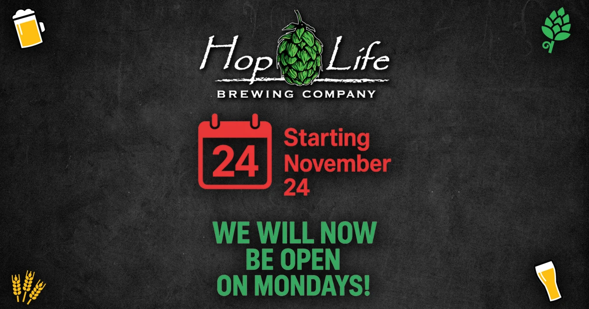 Hop Life will now be open on Mondays starting November 24th!